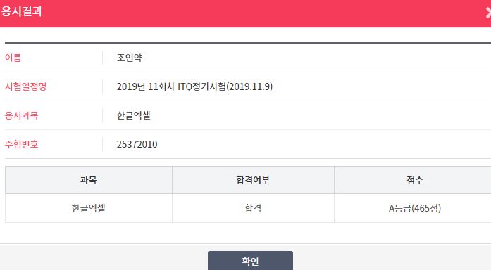 컴활 공부하느라 고생이 많았는데.. itq 엑셀이라도 이렇게 합격해서 기분이 좋긴 하네요.
