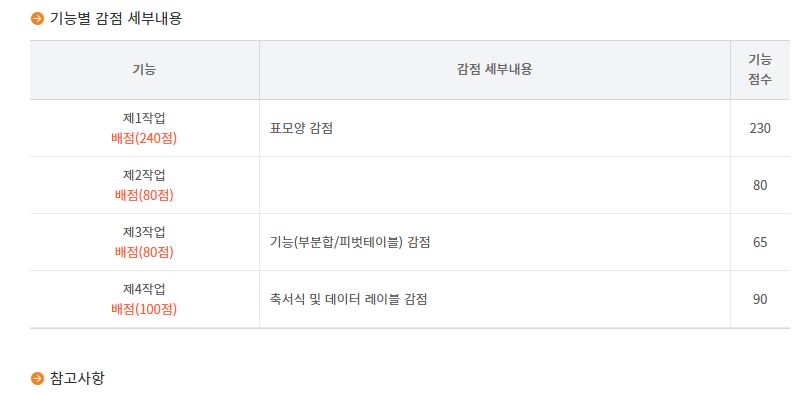 2. 80/65점 취득으로 15점이 감점되었는데. 기능 감점이라고 나옵니다. 제가 정답은 맞혔는데 기능적으로 오류가 있었나 봅니다..