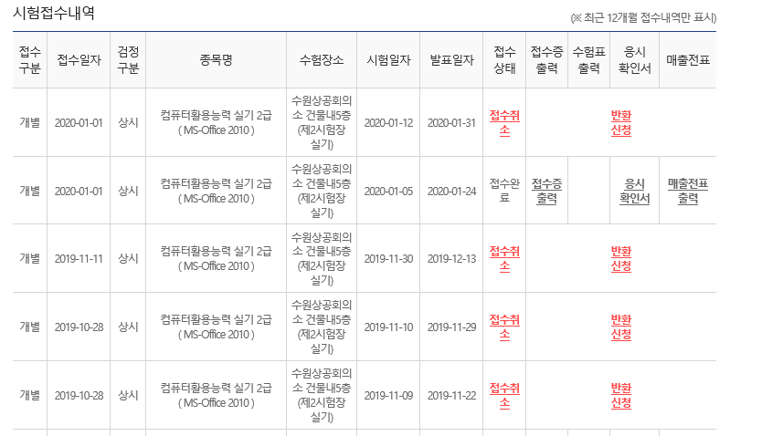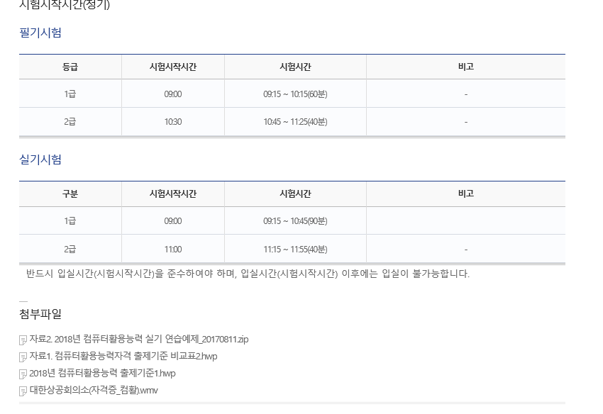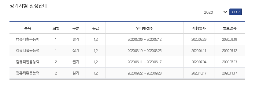 컴퓨터활용능력 1급과 2급 같은 경우 '정기적' 으로 치뤄지는 정기시험이 있습니다.