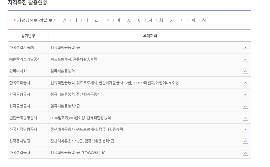위의 내용은 컴활취득 시 자격특전 활용기업현황입니다.