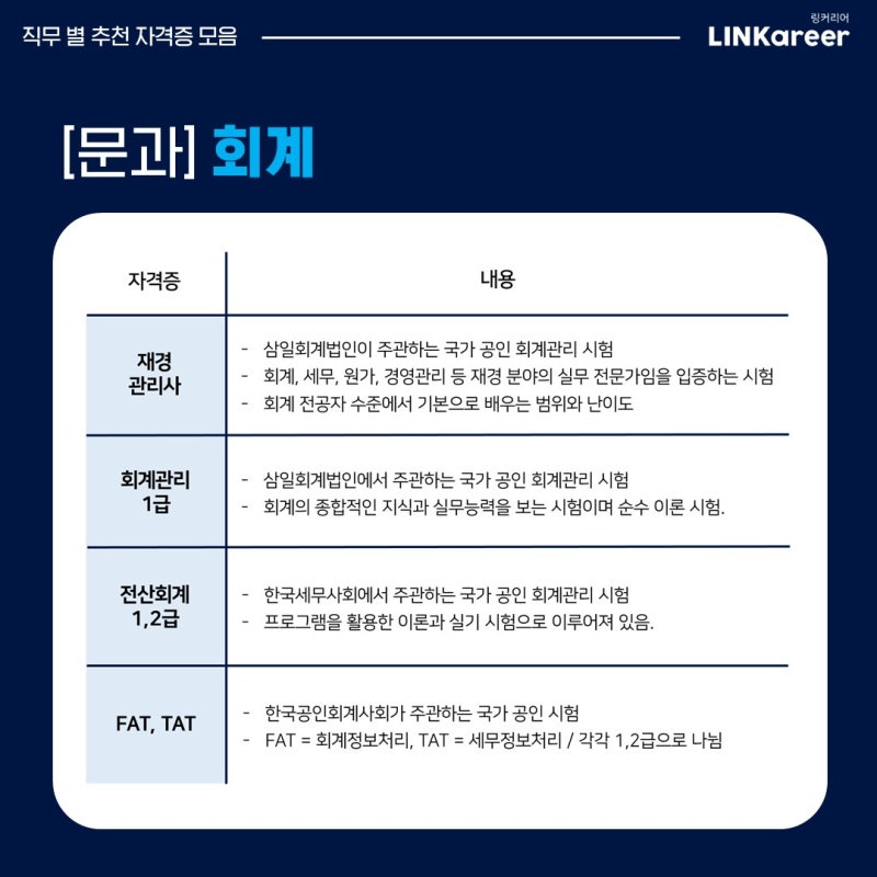 다음은 회계 직무의 추천 자격증을 소개해드리겠습니다!