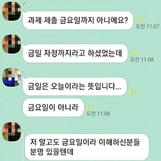 너네는 금일, 명일, 글피, 중식, 우천, 사흘, 무료하다, 가제, 오금, 샌님, 미덥다